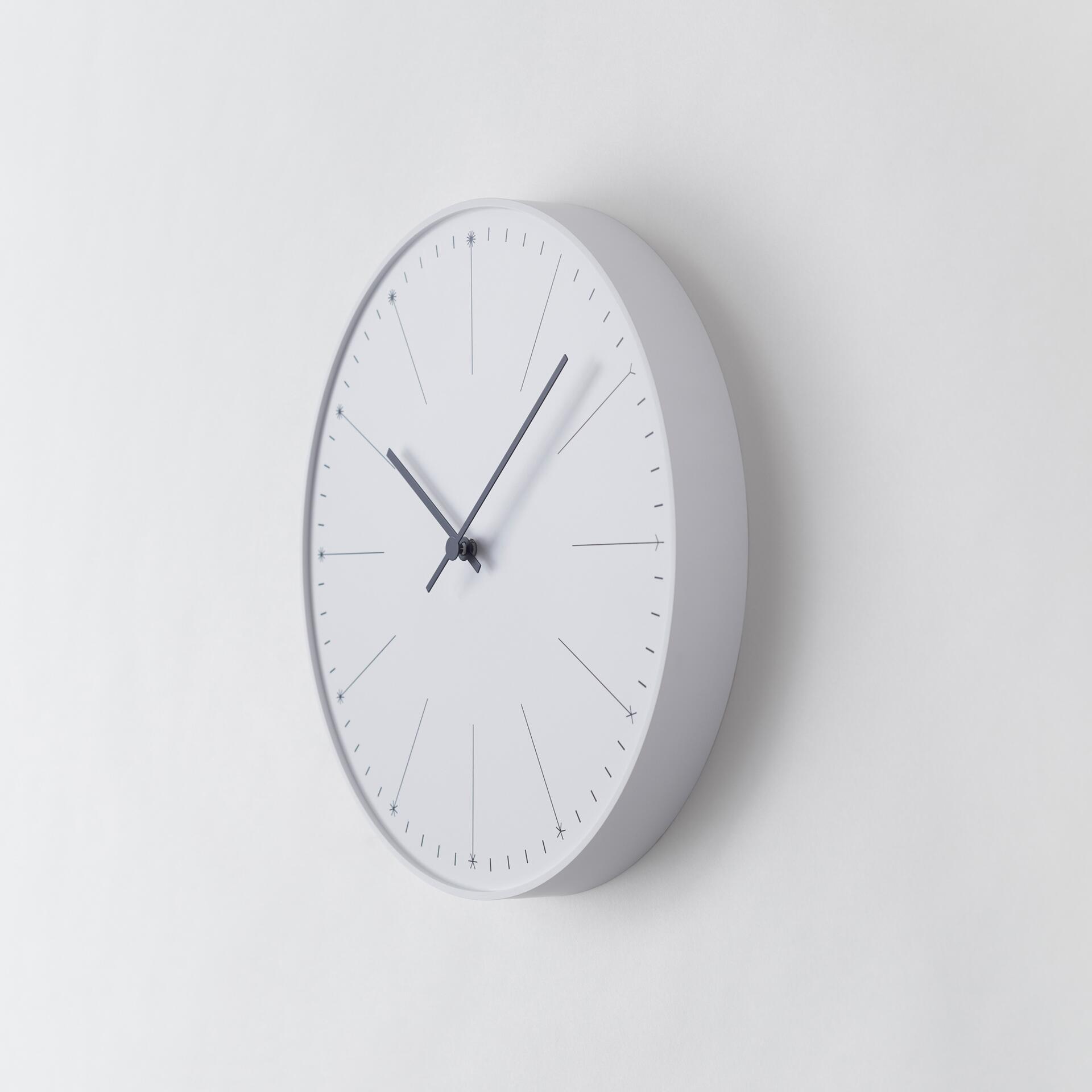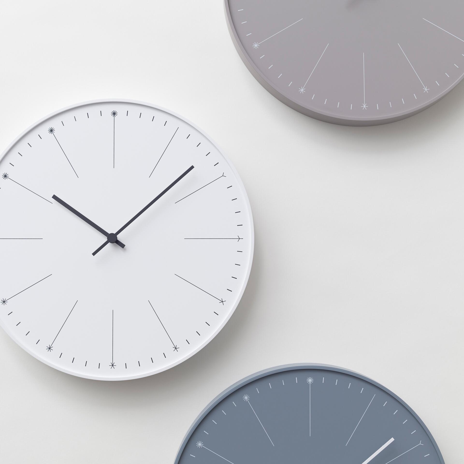 Design Wanduhr von Nendo aus Japan. Die Dandelion Uhr von Lemnos zählt die Zeit, indem das Ziffernblatt anstatt Zahlen die Samenköpfe vom Löwenzahn darstellt: vom einzelnen Samen bis hin zur vollständigen Pusteblume. Damit spielt diese elegante Uhr aus Japan darauf an, dass die Zeit dahin fliegt, wie leicht auf dem Wind tanzende Blumensamen.