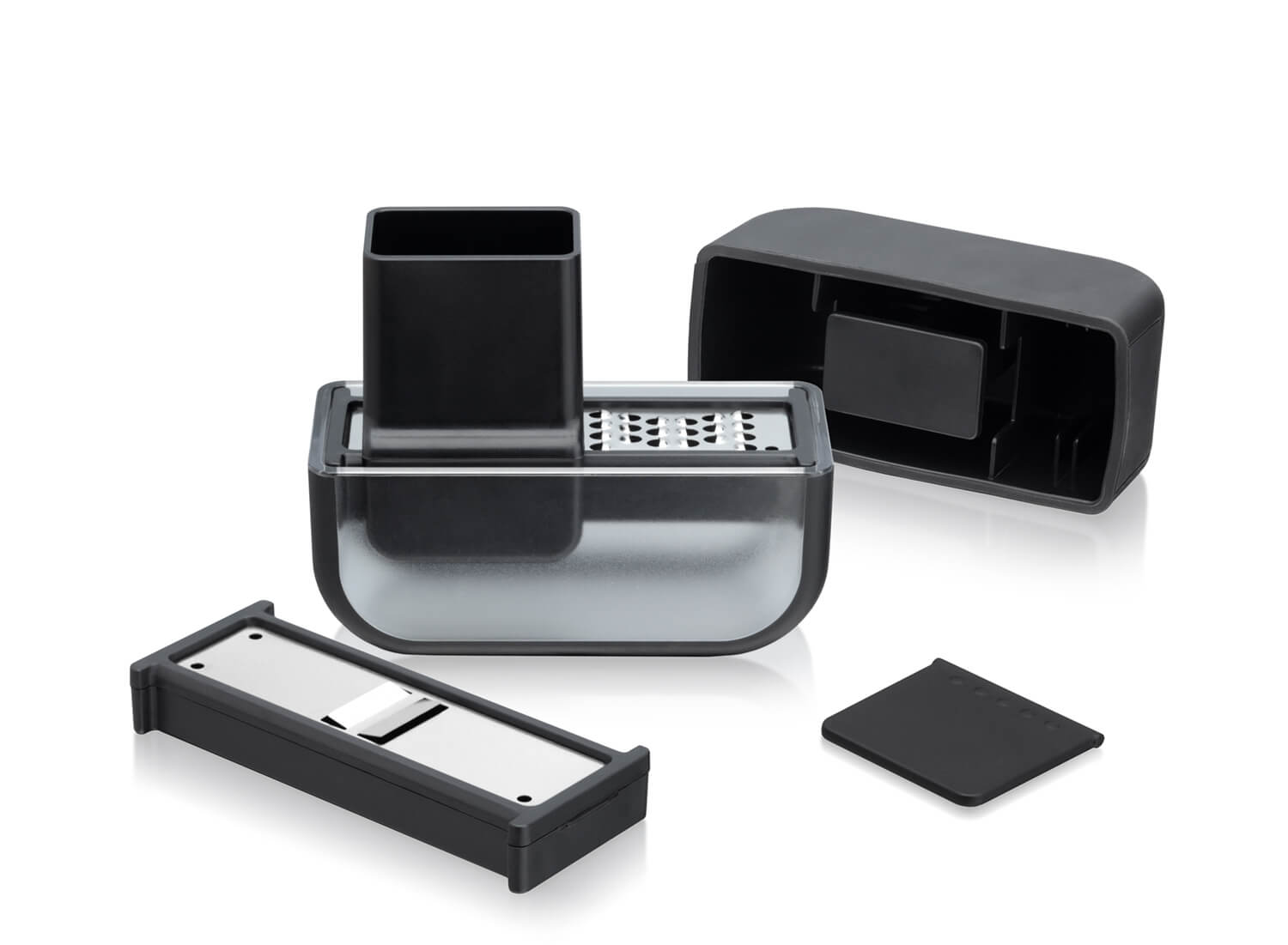 Der kleine Schaber, der im Deckel verstaut ist, ermöglicht ein müheloses Entfernen des Schneidguts zur Weiterverarbeitung.